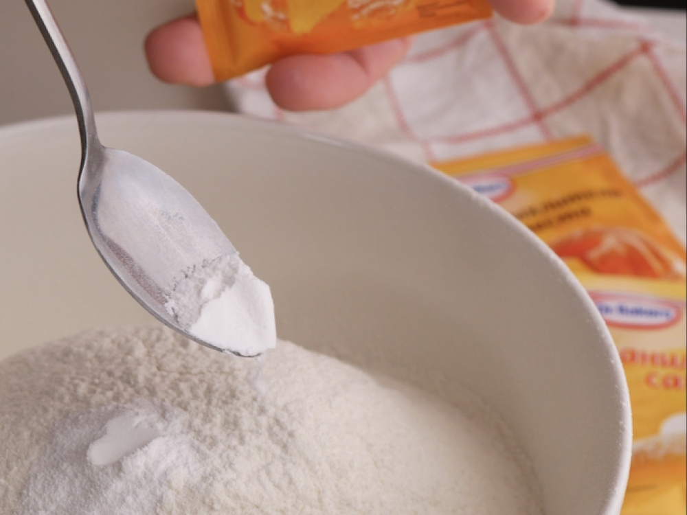 Отдельно смешиваем муку (200 г) с разрыхлителем Dr. Bakers (1 ч. л.).