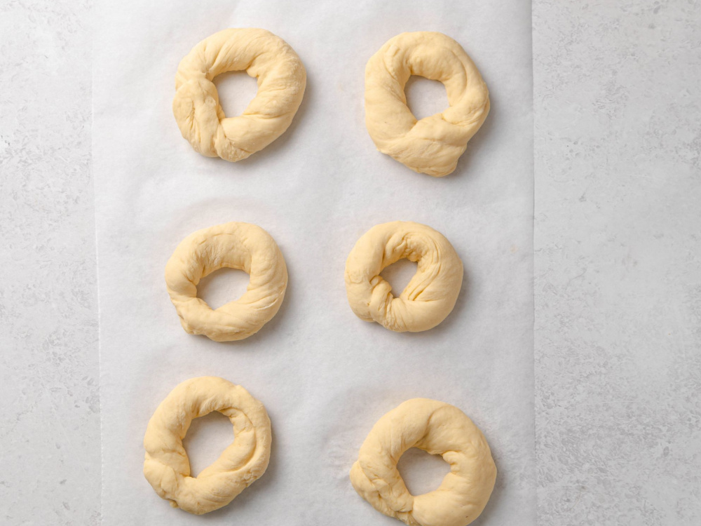 Из каждого кусочка снова раскатываем колбаску и заворачиваем бубликом.