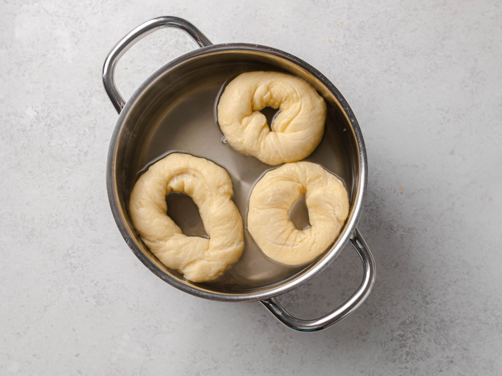 В кастрюле кипятим воду, добавляем туда мёд (1 ст. л.). В кипящую воду кладем бублики и варим 30 секунд.