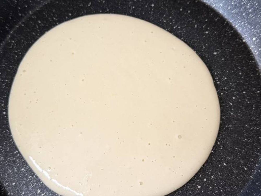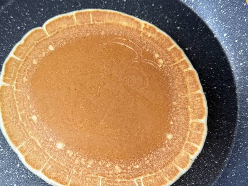 Разогрейте сковороду с антипригарным покрытием на среднем огне. Используйте ложку или половник для наливания теста на сковороду, формируя круглые панкейки диаметром 7-8 см. Жарьте каждый панкейк отдельно, чтобы обеспечить равномерное пропекание. Когда на поверхности появятся пузырьки, аккуратно переверните их лопаткой и обжаривайте с другой стороны до золотистой корочки. Продолжительность жарки с каждой стороны должна составлять примерно 1-2 минуты.