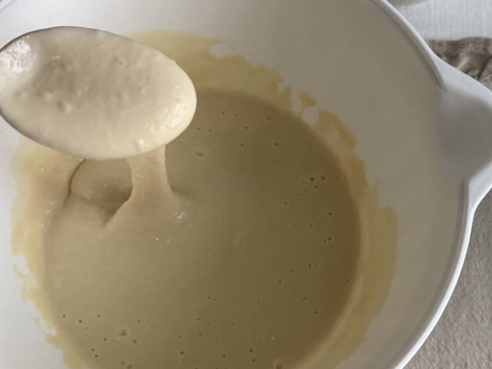 В отдельной миске смешайте муку, разрыхлитель, соль, ванильный сахар для аромата. Постепенно добавляйте сухие ингредиенты в жидкую смесь, аккуратно перемешивая до образования однородного теста для классических американских панкейков.