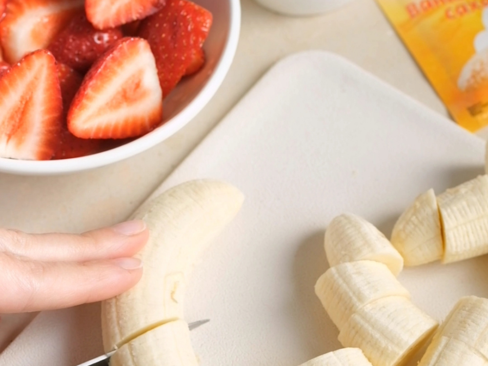 Бананы (2-3 шт.) чистим и режем колечками.