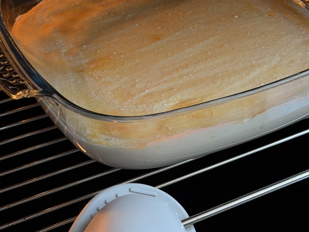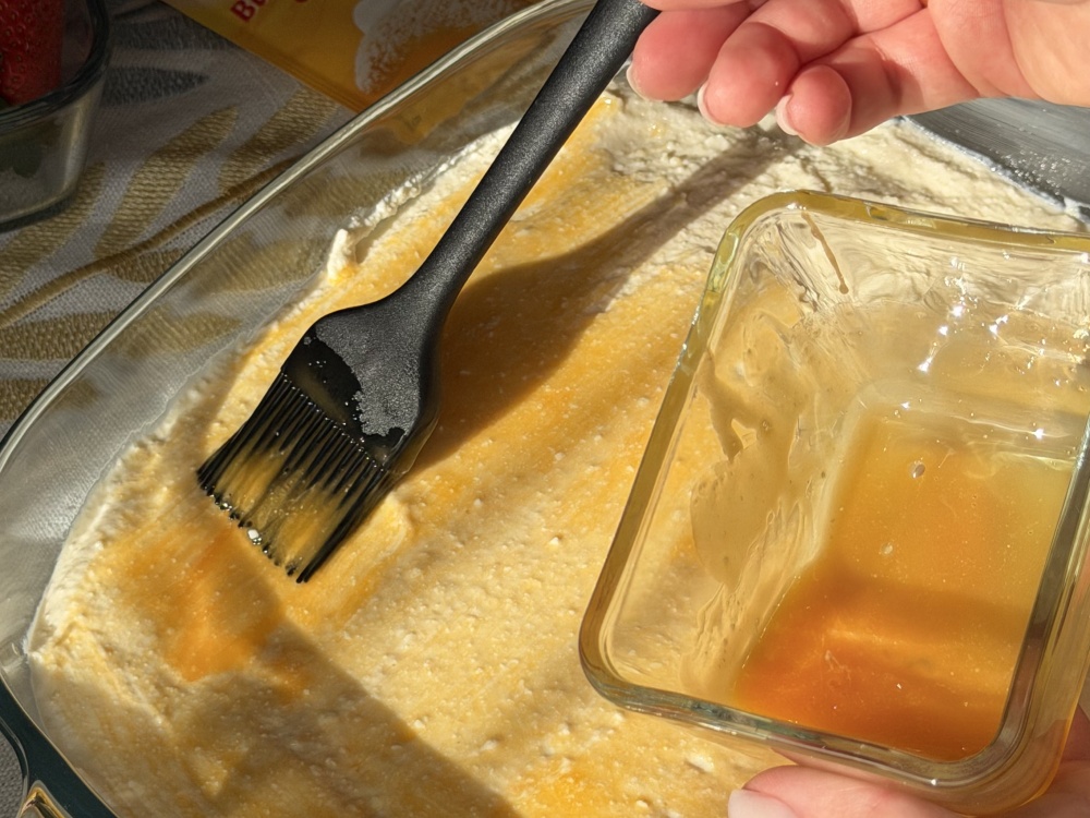 Получeнную массу выкладывeм в форму и можно смaзать сверху взбитым желтком.