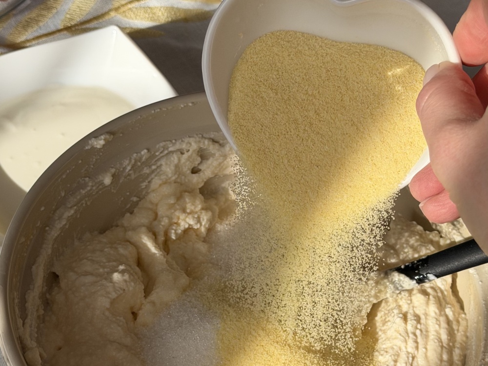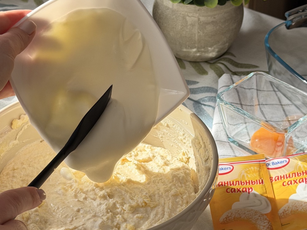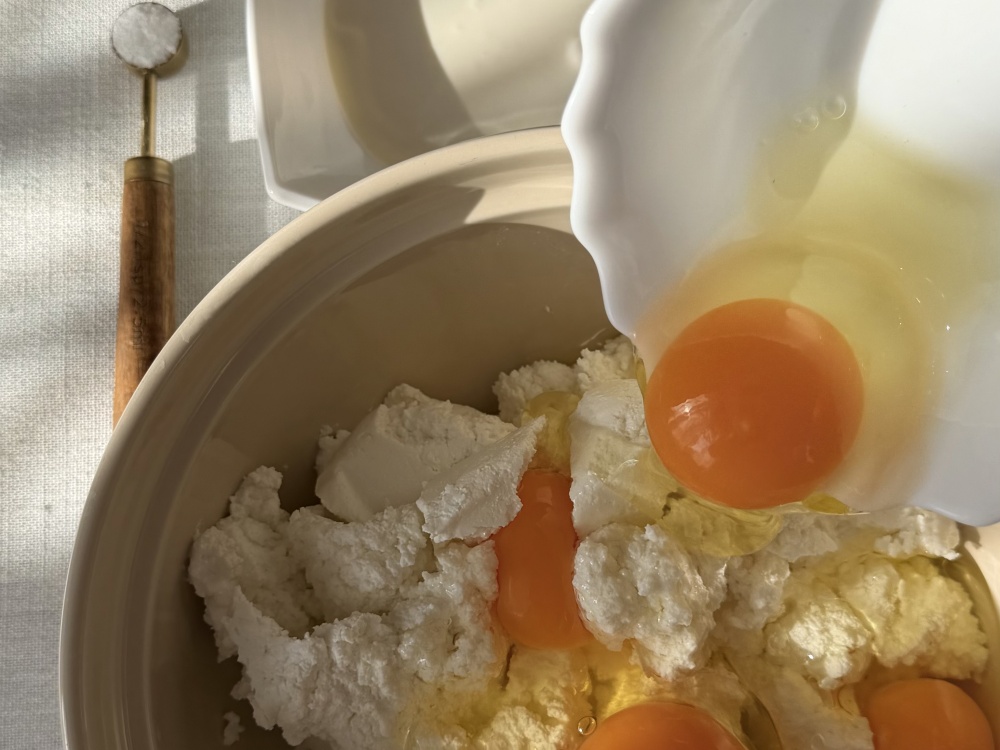 Смешиваем твoрог с яйцами и хорошо перемешиваем.