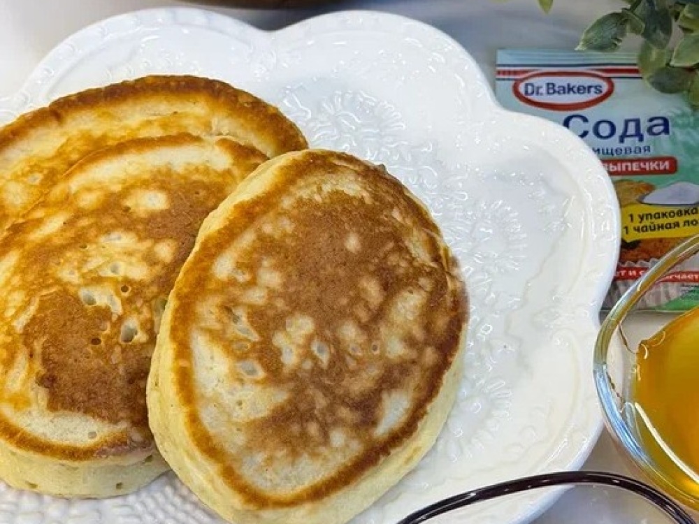 Готовые оладушки полить медом, йогуртом или вареньем (по вкусу).