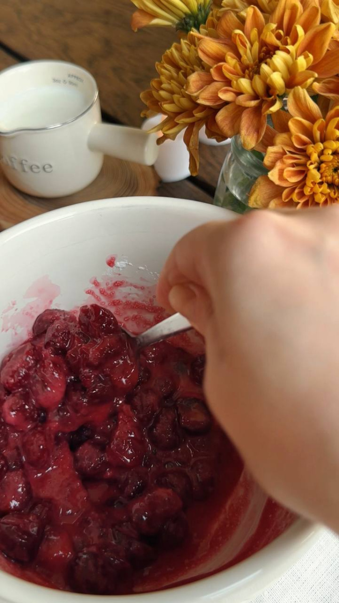 Для начинки доводим до загустения вишню (200 г), сахар (50 г) и крахмал (10 г).