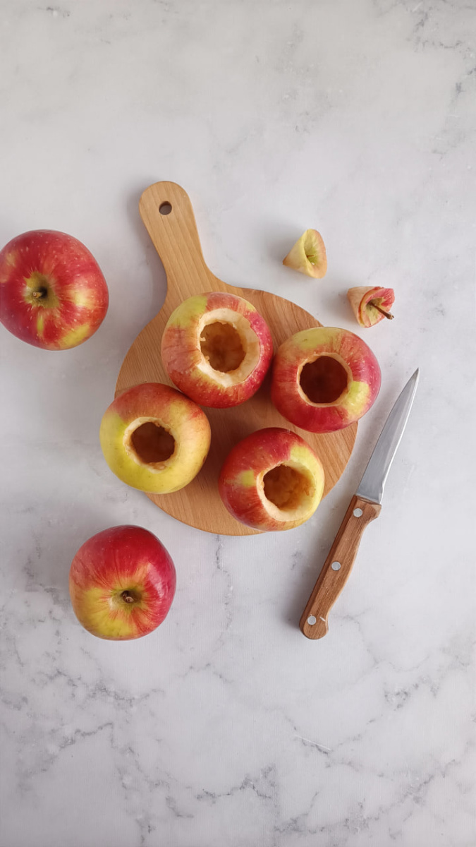 У яблок (6 шт.) вырезаем сердцевину.