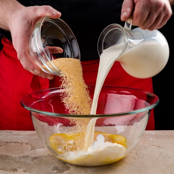 Отделите желтки от белков и смешайте теплое молоко, желтки, растопленное сливочное масло, соль, сахар.
