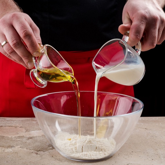 Для декора смешайте молоко, муку и растительное масло.