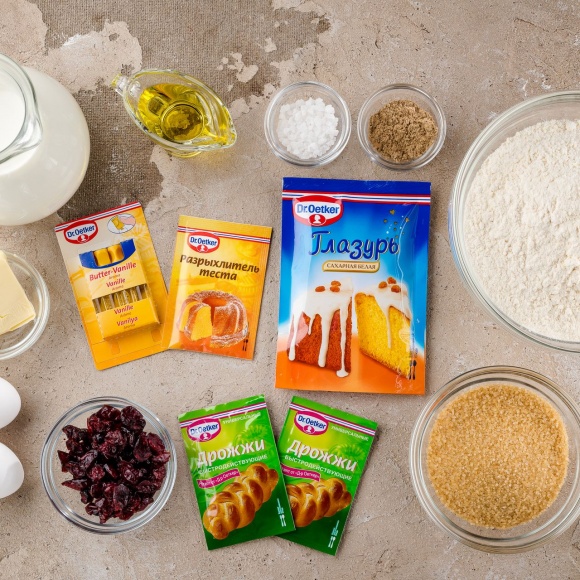 Для приготовления пасхальных булочек нам понадобятся следующие ингредиенты.