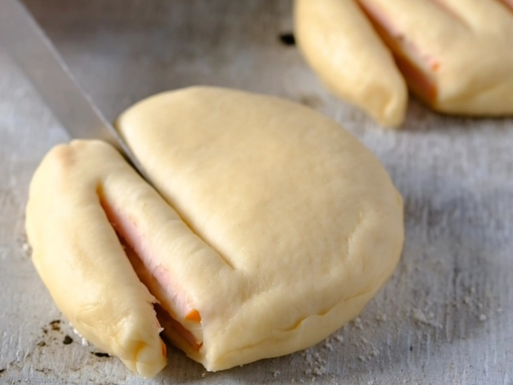 Защипываем края и надрезаем каждую булочку зигзагом.