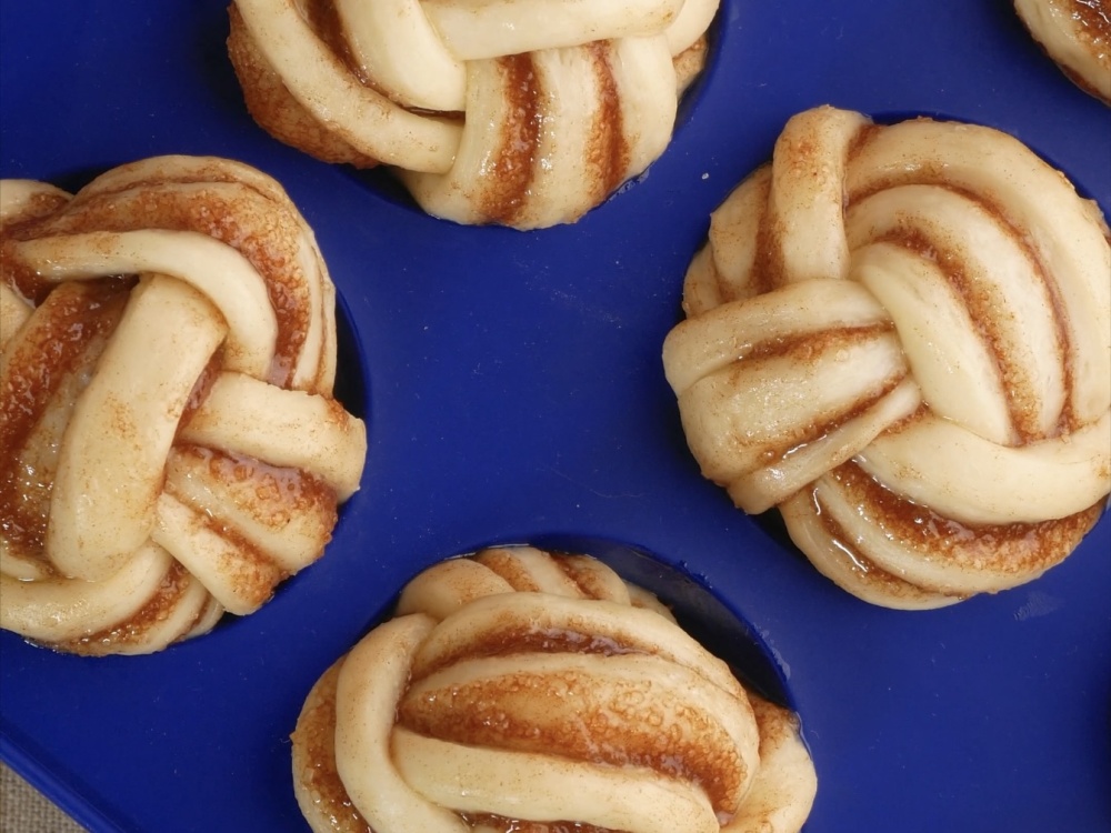 Заплетаем из теста косу, сворачиваем в шар, укладываем в силиконовую форму Dr. Bakers c 12 ячейками.