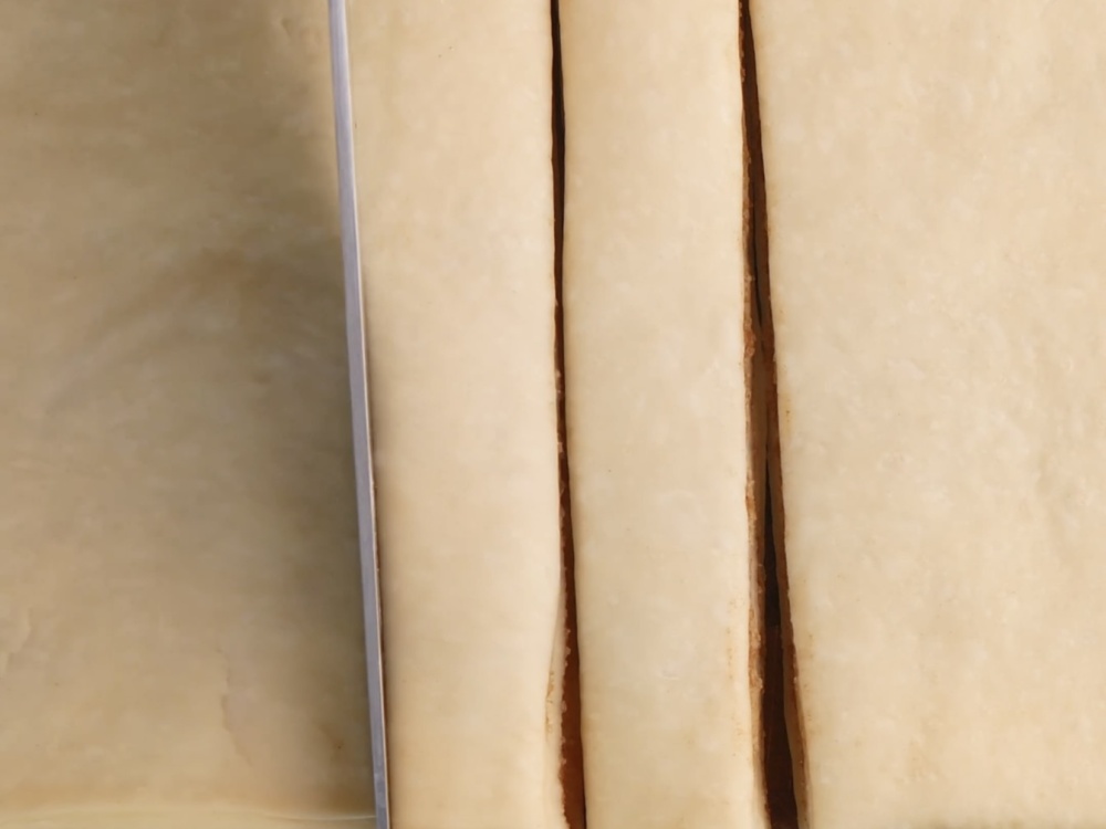 Делим тесто на 12 частей. Эти полоски в свою очередь делим ещё на три части (для удобства можно разрезать не до конца).