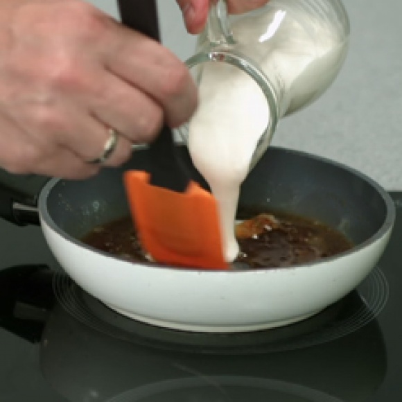 Влить сливки, аккуратно перемешать.