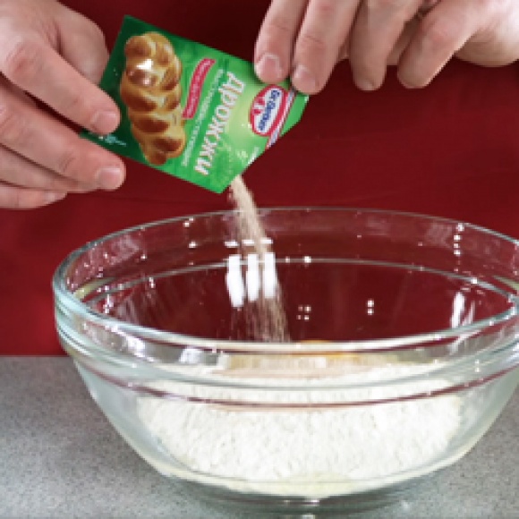 В муку добавить яйца, сахар, дрожжи, сахар с натуральной ванилью, молоко. Перемешать до однородности, накрыть салфеткой. Поставить подходить в духовку при 40⁰С на 1 час.