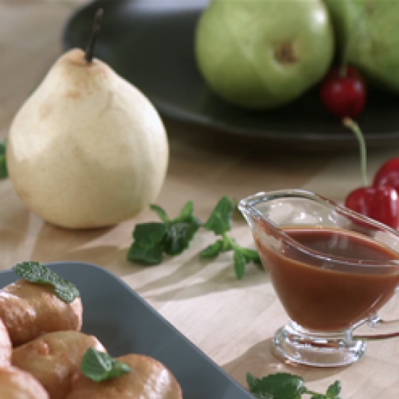 Готовый соус перелить в соусник и подавать вместе с грушами. Приятного аппетита!