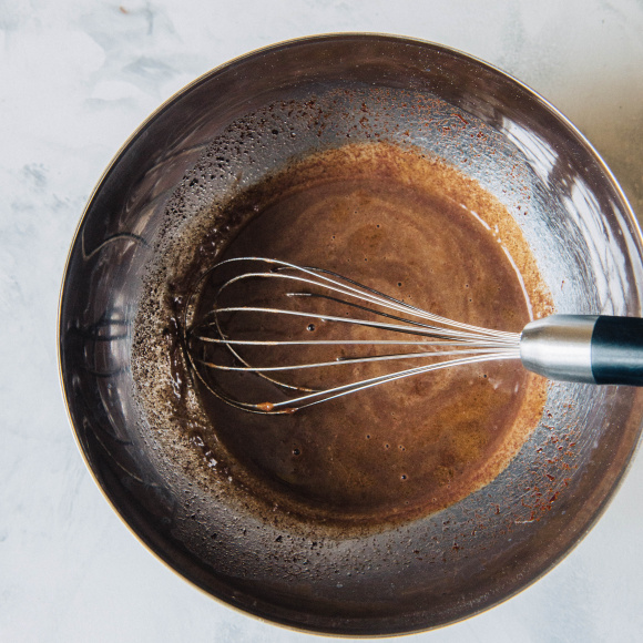 Помешивая доводим смесь до растворения масла и шоколада. Важно, не доводить смесь до кипения.