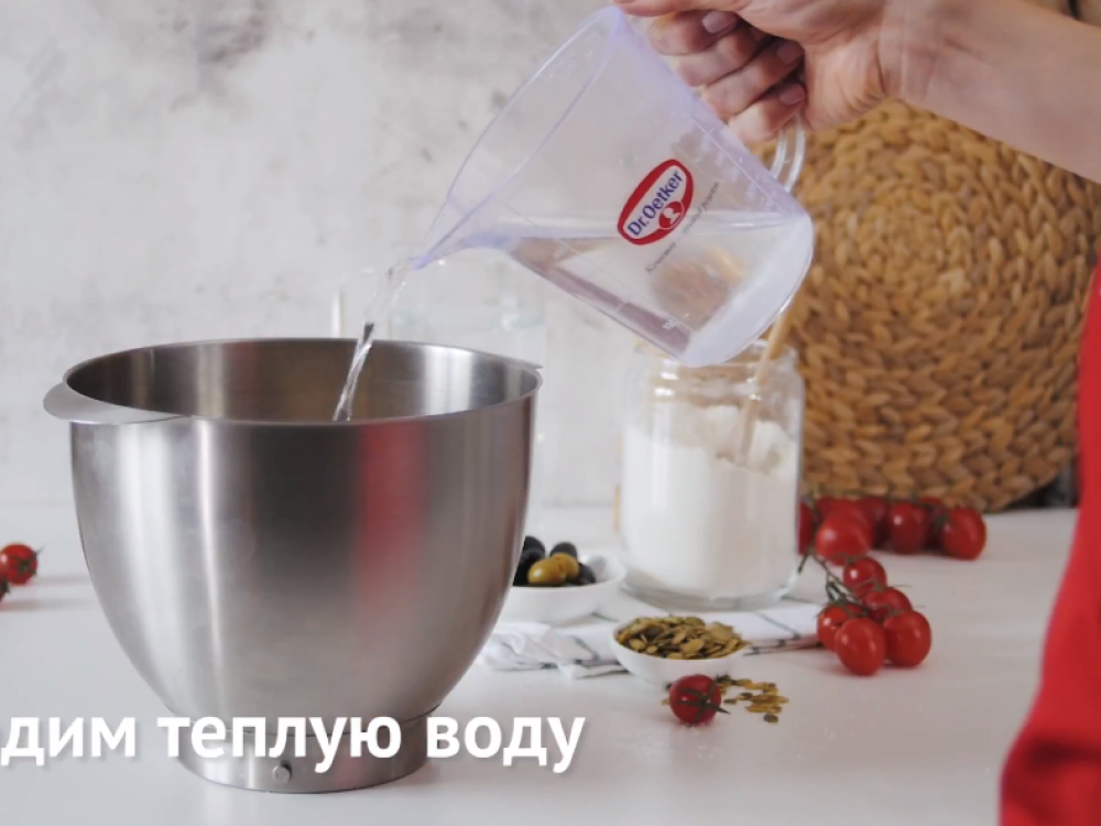 Вводим тёплую воду. Замешиваем вязкое тесто и отправляем на расстойку (до 3 часов).