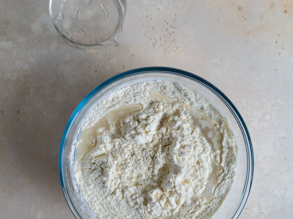 Соединяем муку с водой.