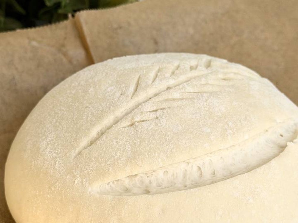 Сформируйте каравай. Противень смажьте жиром, сделайте ножом поперечные разрезы сверху. Выложите изделие и оставьте на 20 минут подняться. Духовку (или печь) разогрейте, поместите в нее противень с караваем. Перед тем как выпекать, смажьте водой верх хлеба, чтобы не растрескался. Через полчаса, если вы будете соблюдать температурный режим 200 градусов, быстрый хлеб будет готов.