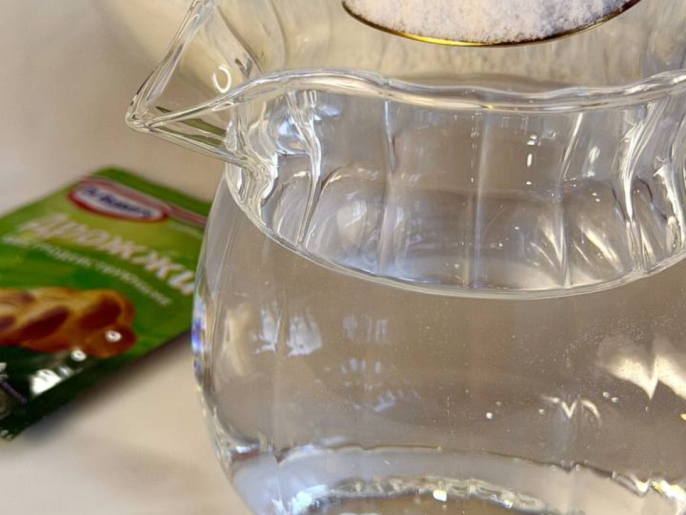 В глубокую чашу нальем воды, нагретой до 30 градусов, добавим соль, сахарный песок.
