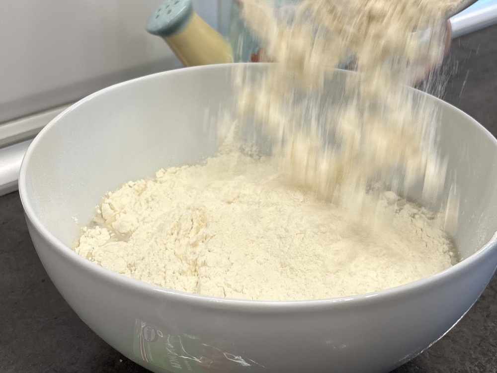 Затем вводим муку порционно, так как её может уйти больше или наоборот меньше.
