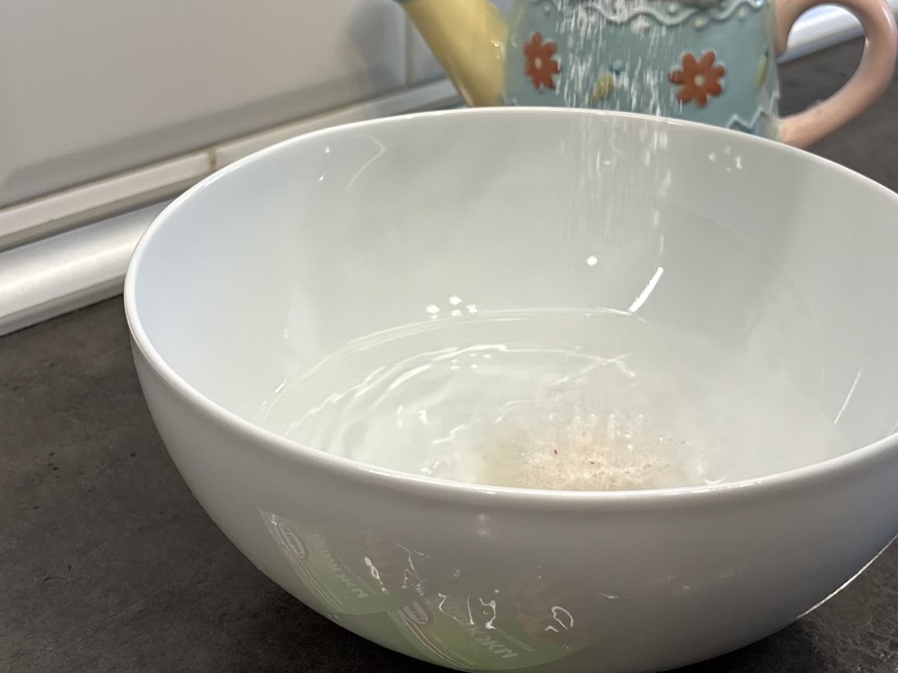 Наливаем теплую воду в глубокую емкость. Добавляем дрожжи, сахар, соль.