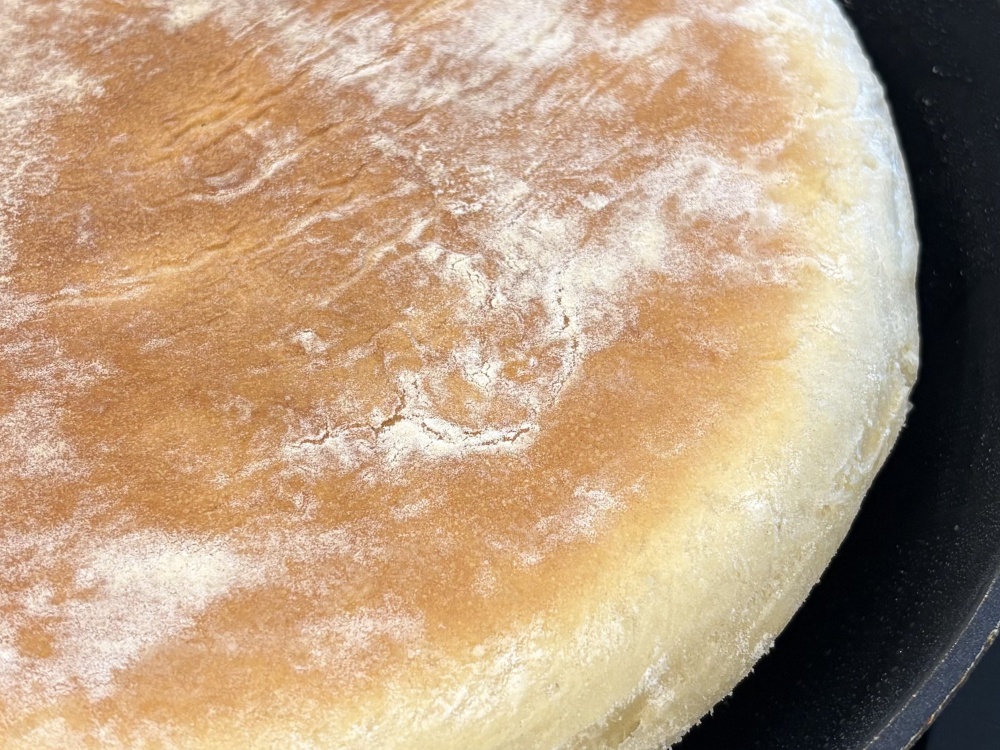 Затем ставим сковороду на маленький огонь и жарим примерно 30 минут под крышкой. Через полчаса переворачиваем хлеб и продолжаем жарить 30 мин но уже без крышки. Вытаскиваем наш хлеб и даем остыть.