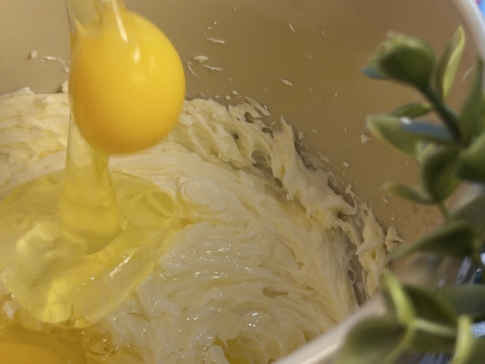 Добавляем яйцо (3 шт.) и взбиваем несколько минут миксером.