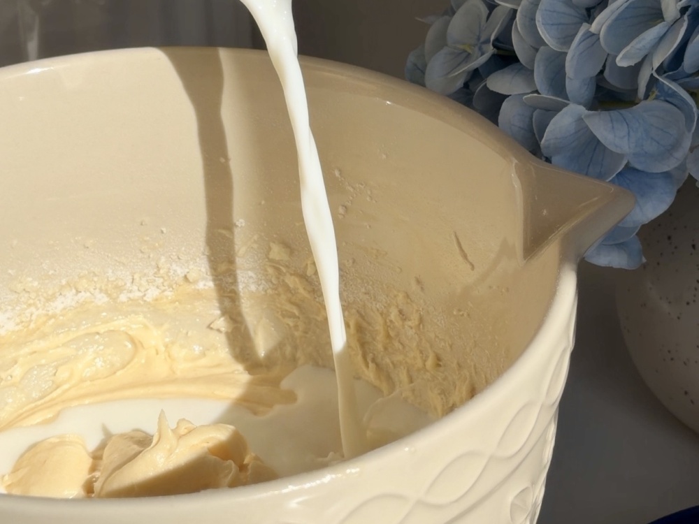 Добавить молоко и еще раз хорошо перемешать.
