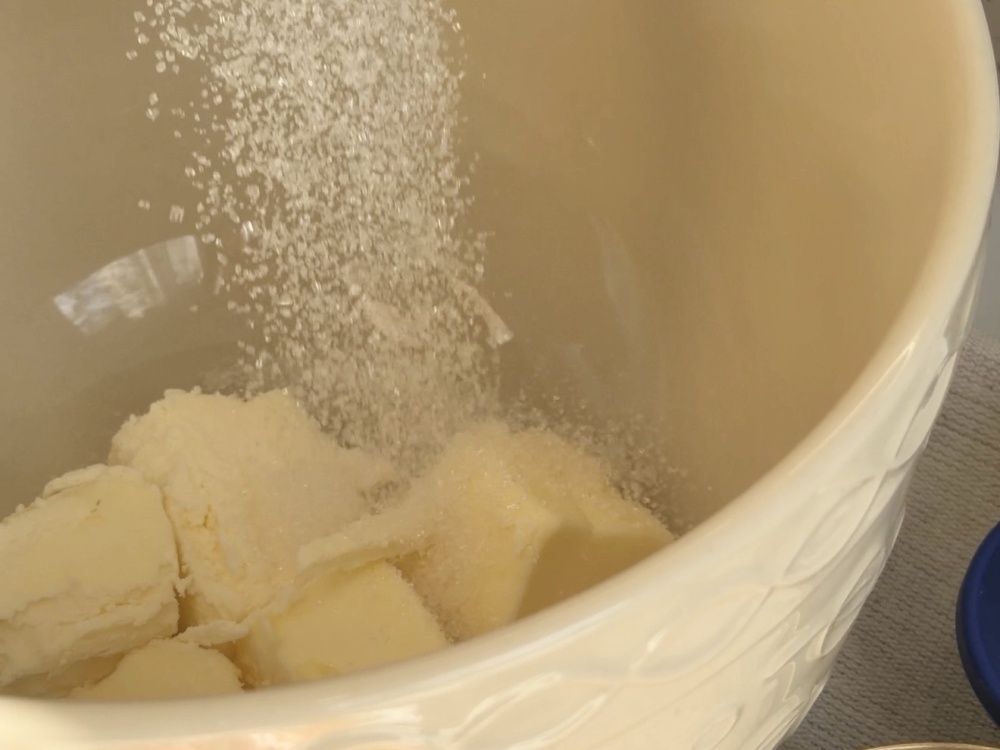 Масло взбить с сахаром до однородной пышной массы.