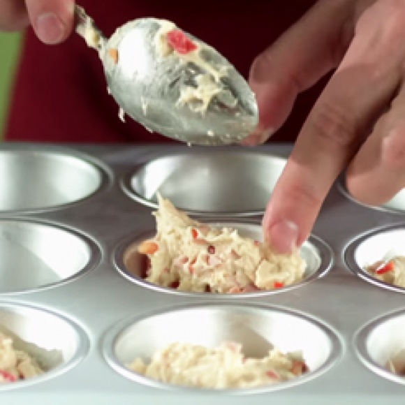 Ложкой выложить тесто в форму для маффинов, смазанную растительным маслом.