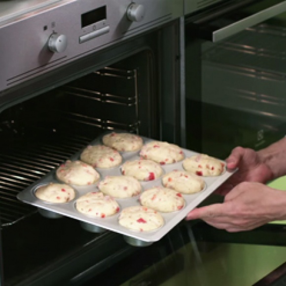 Еще раз дать подойти тесту в форме для маффинов в течение 20 минут перед выпечкой. Выпекать 25 минут при температуре 220 градусов С. Готовые маффины остудить.