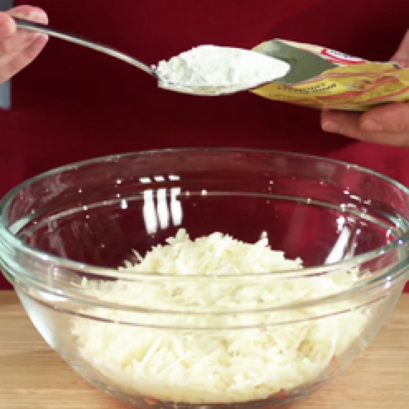 Хорошо смешать муку, соль и сухие дрожжи, орегано.