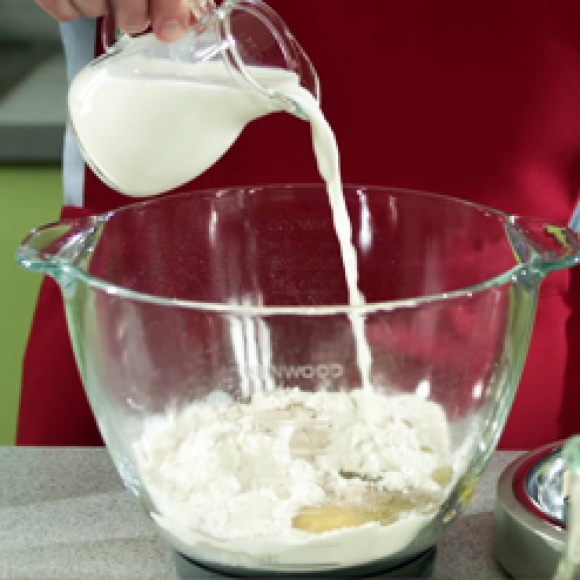 Добавить молоко и оливковое масло и вымесить до образования однородного теста.