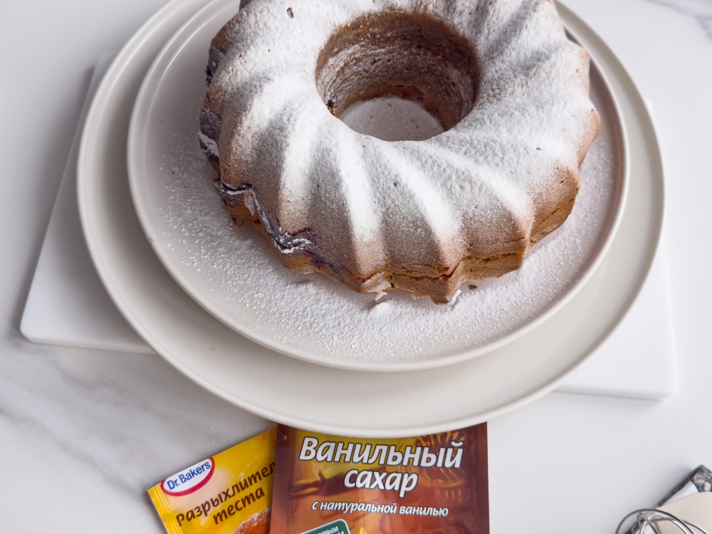 Остужаем в форме 15-20 минут, затем достаём и охлаждаем. Присыпаем сахарной пудрой Dr. Bakers (35 г).