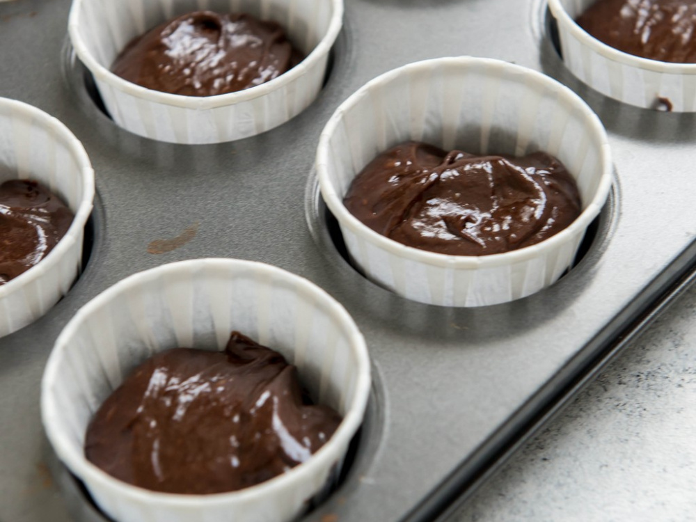 Готовое тесто распределите по формочкам. Не наполняйте формы больше половины, чтобы выросшие в духовке шоколадные капкейки не убежали. Одна порция примерно равна столовой ложке с горкой.