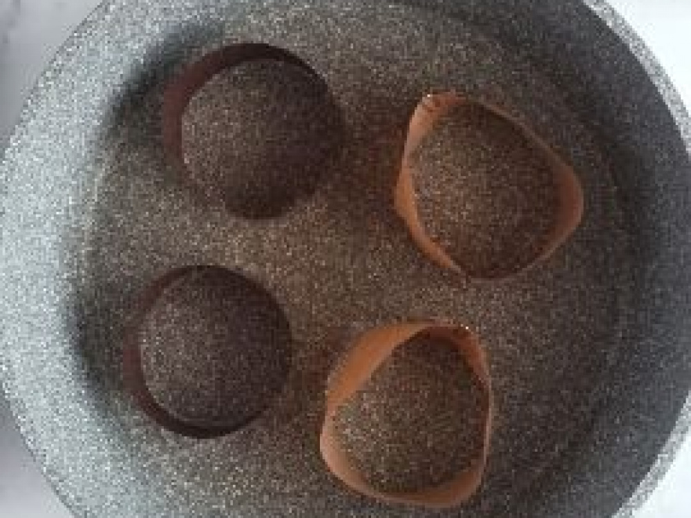 Если хотите получить идеальную круглую форму панкейков, то по желанию, перед выпечкой нужно приготовить формочки - кольца для панкейков. Первый вариант: вырезаем из пергаментной бумаги полоски шириной 3 см и скрепляем их скрепкой. Второй вариант: если у вас есть формочки для куличей, то можно разрезать их.