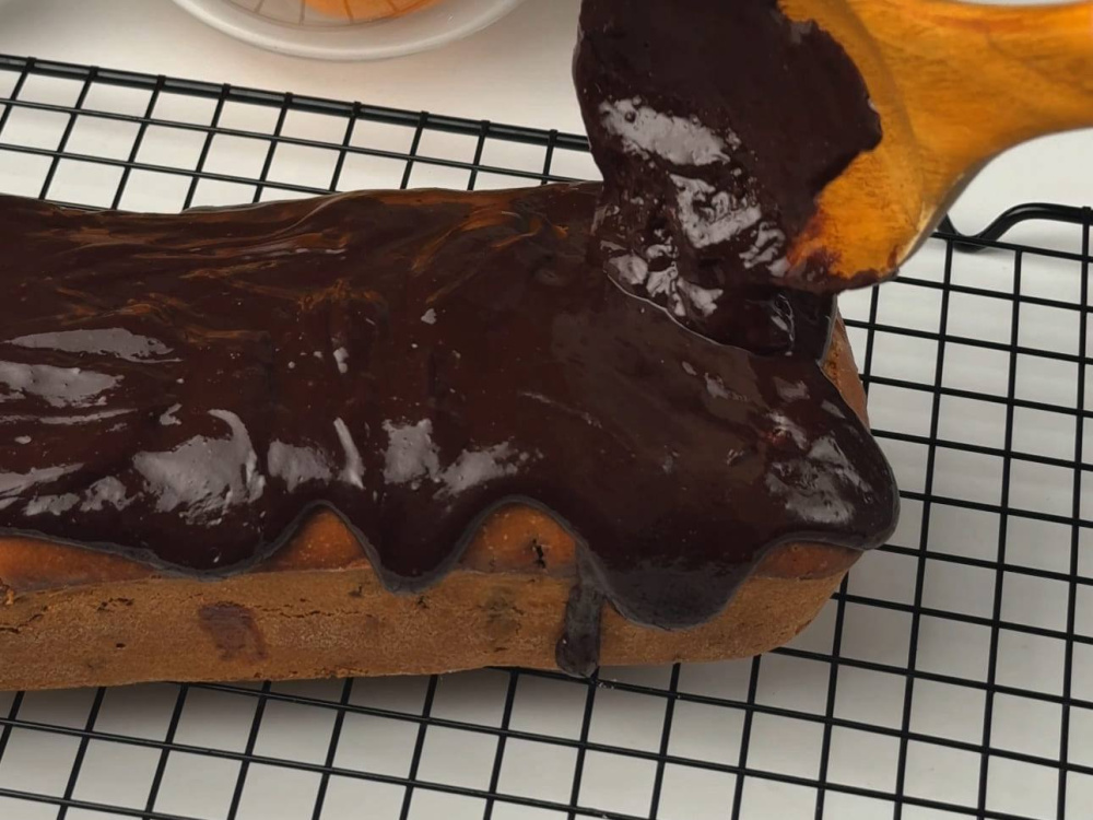 Еще горячий рождественский кекс полейтезеркальной глазурью со вкусом шоколада Dr.Bakers. К глазури добавить сливочное масло 50 гр, молоко 30 мл, готовить по инструкции на упаковке.