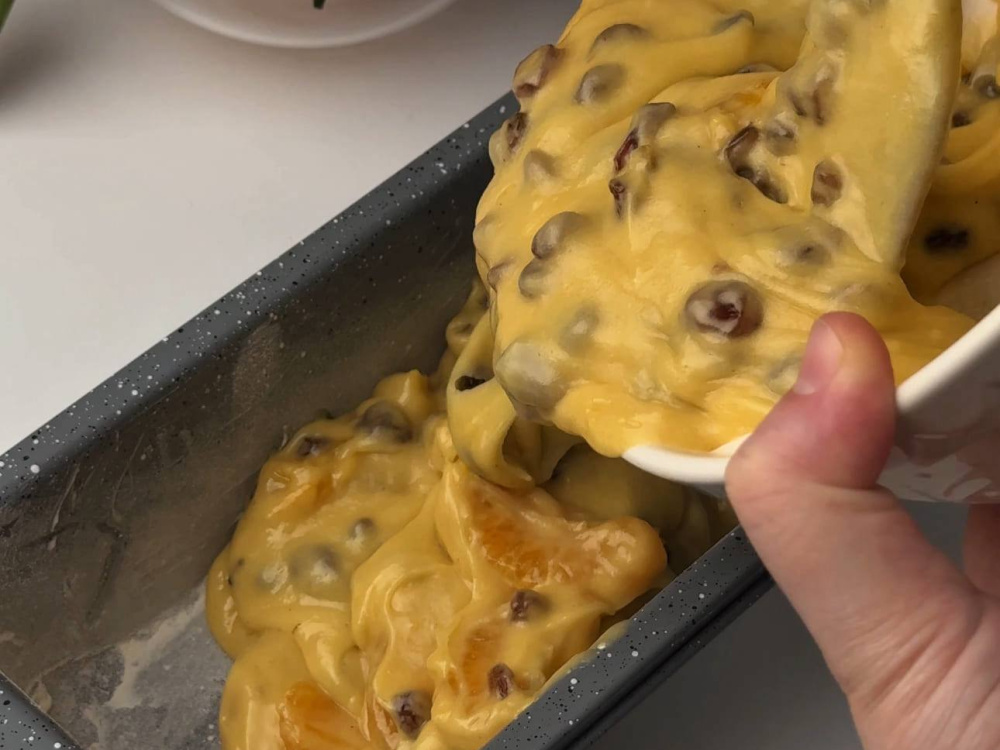 Соедините просеянную муку с разрыхлителем теста Dr.Bakers, введите их в масляную смесь и добавьте сухофрукты. Если тесто получилось жидким, добавьте еще немного муки.