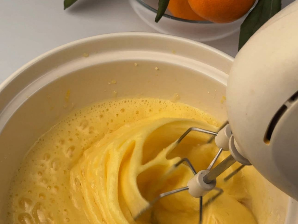 Взбейте яйца с сахаром до пышной пены. В массу добавить сливочное масло.