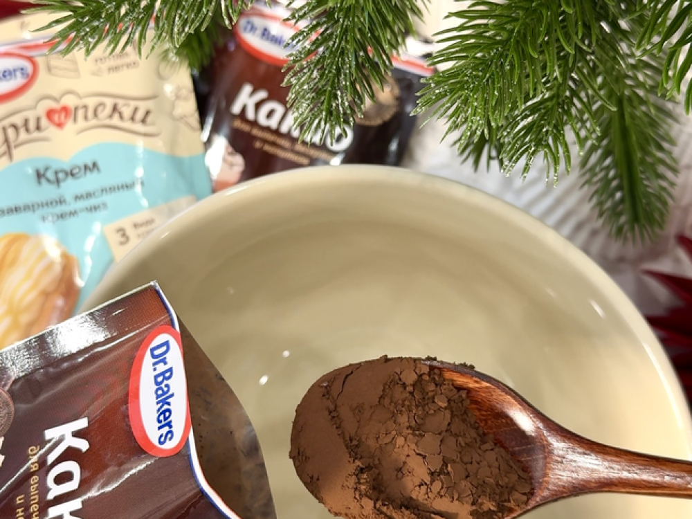 Готовим какао. К молоку (300 мл) добавляем какао-порошок Dr. Bakers (1 уп.) и размешиваем венчиком до растворения какао.