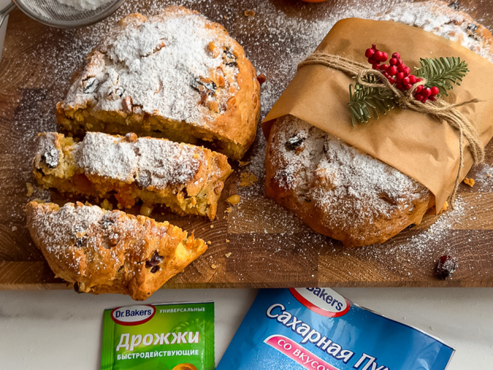 Остывший штоллен заворачиваем в фольгу и кладем в прохладное место. В таком вид он может храниться около 3 недель. Приятного аппетита!