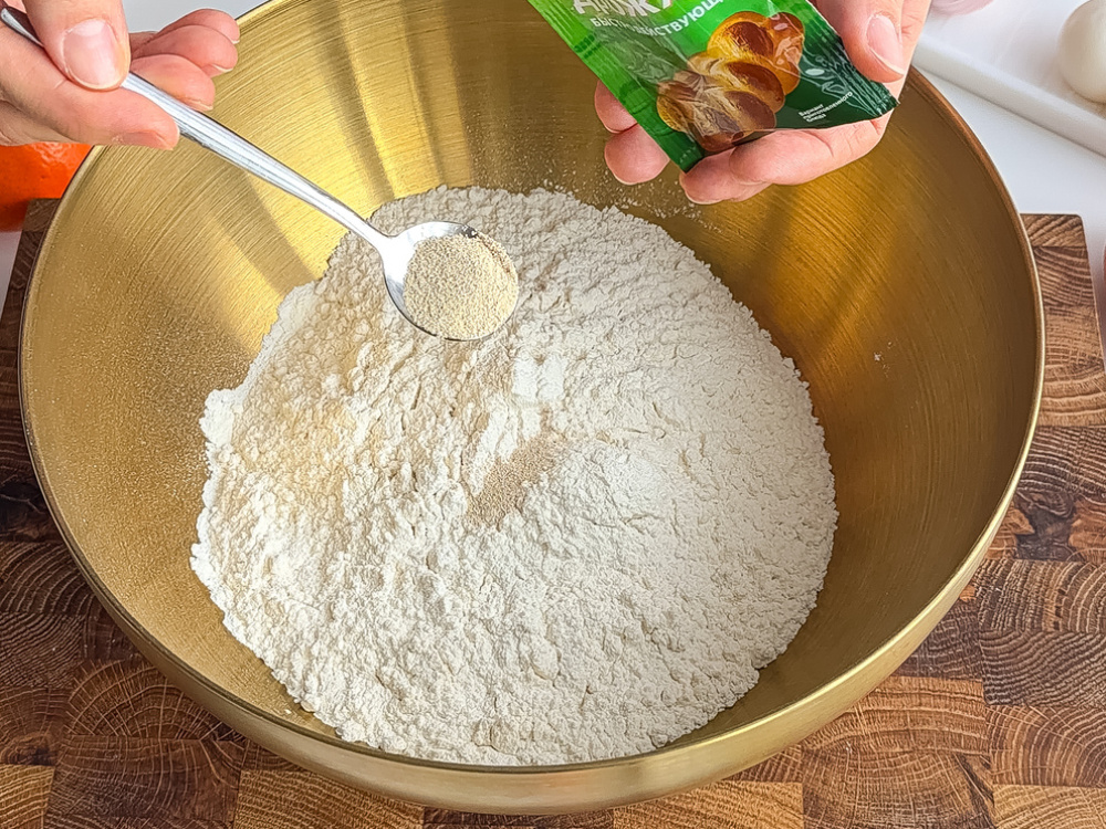 Замешиваем тесто, оно не должно прилипать к рукам. Накрываем полотенцем и ставим в теплое место на 1 час.