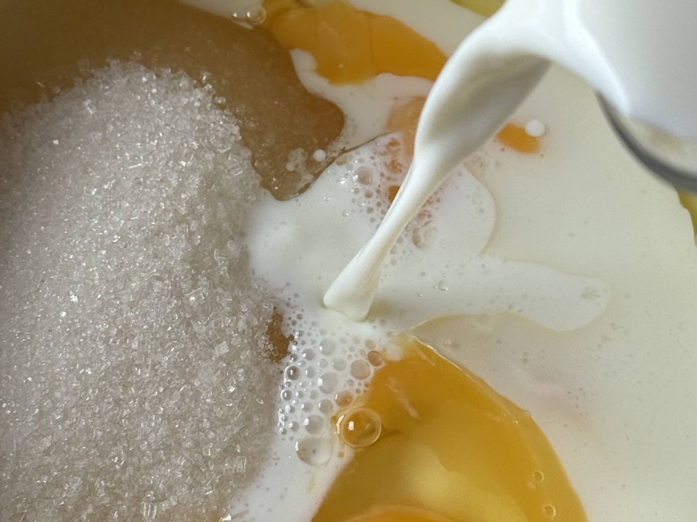 Кекс готовится очень просто. Соединить сразу почти все ингредиенты: сахар, яйца, масло, молоко, ванильный сахар по вкусу.