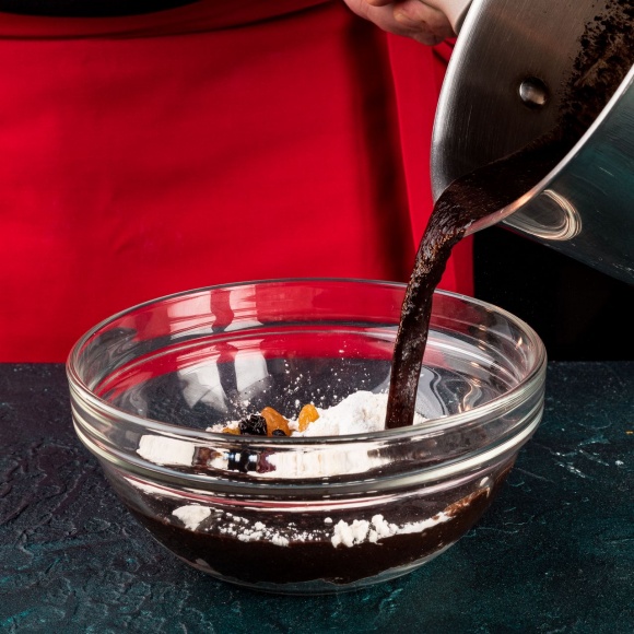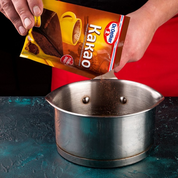 В получившуюся смесь высыпьте какао-порошок Dr. Oetker и специи (имбирь, корицу, кардамон). Тщательно перемешайте.