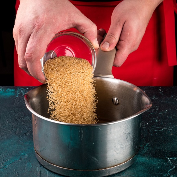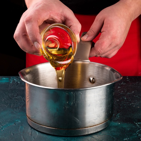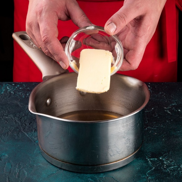 Снимите кастрюльку с огня, добавьте сливочное масло и распустите его в медово-сахарном сиропе.
