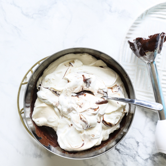 Шоколадную массу соединяем со взбитыми сливками. Вмешивать сливки нужно аккуратно, тогда готовый шоколадный мусс получится воздушным.