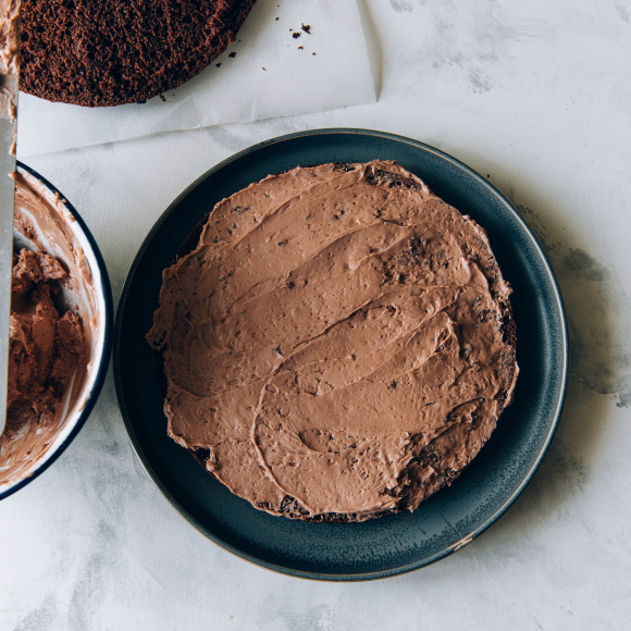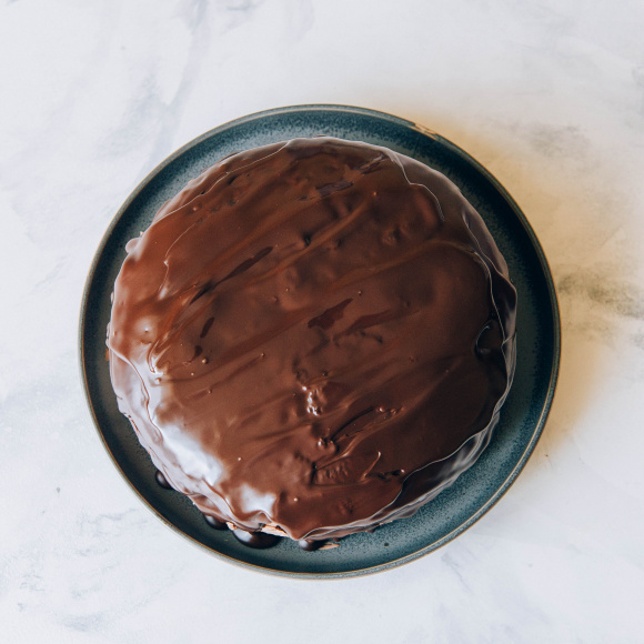 Как только глазурь станет жидкой, обрезаем уголок упаковки и покрываем готовый торт. Чтобы глазурь распределилась равномерно, используйте кулинарный шпатель, или широкий нож.