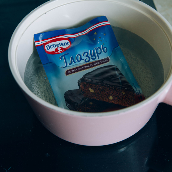Пакетик с глазурью Dr. Bakers помещаем в сотейник с горячей водой на 5 минут.